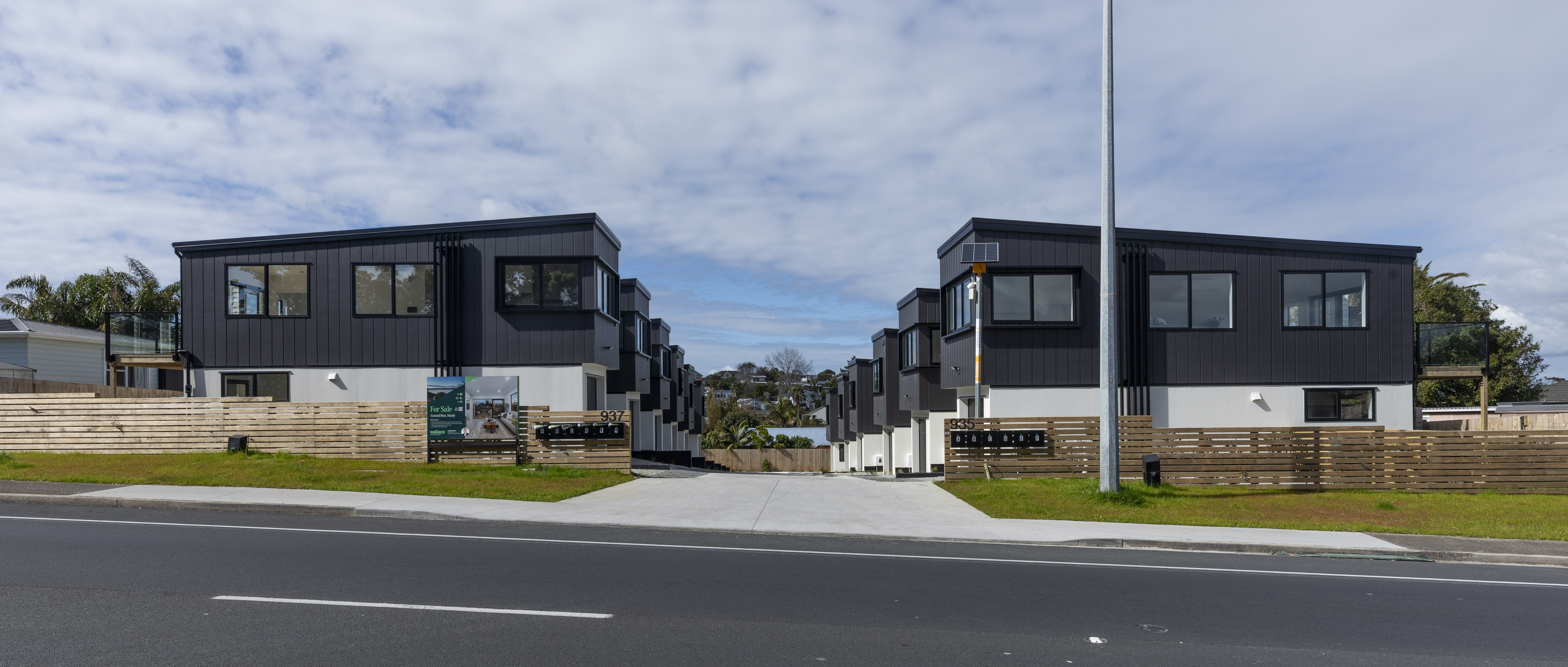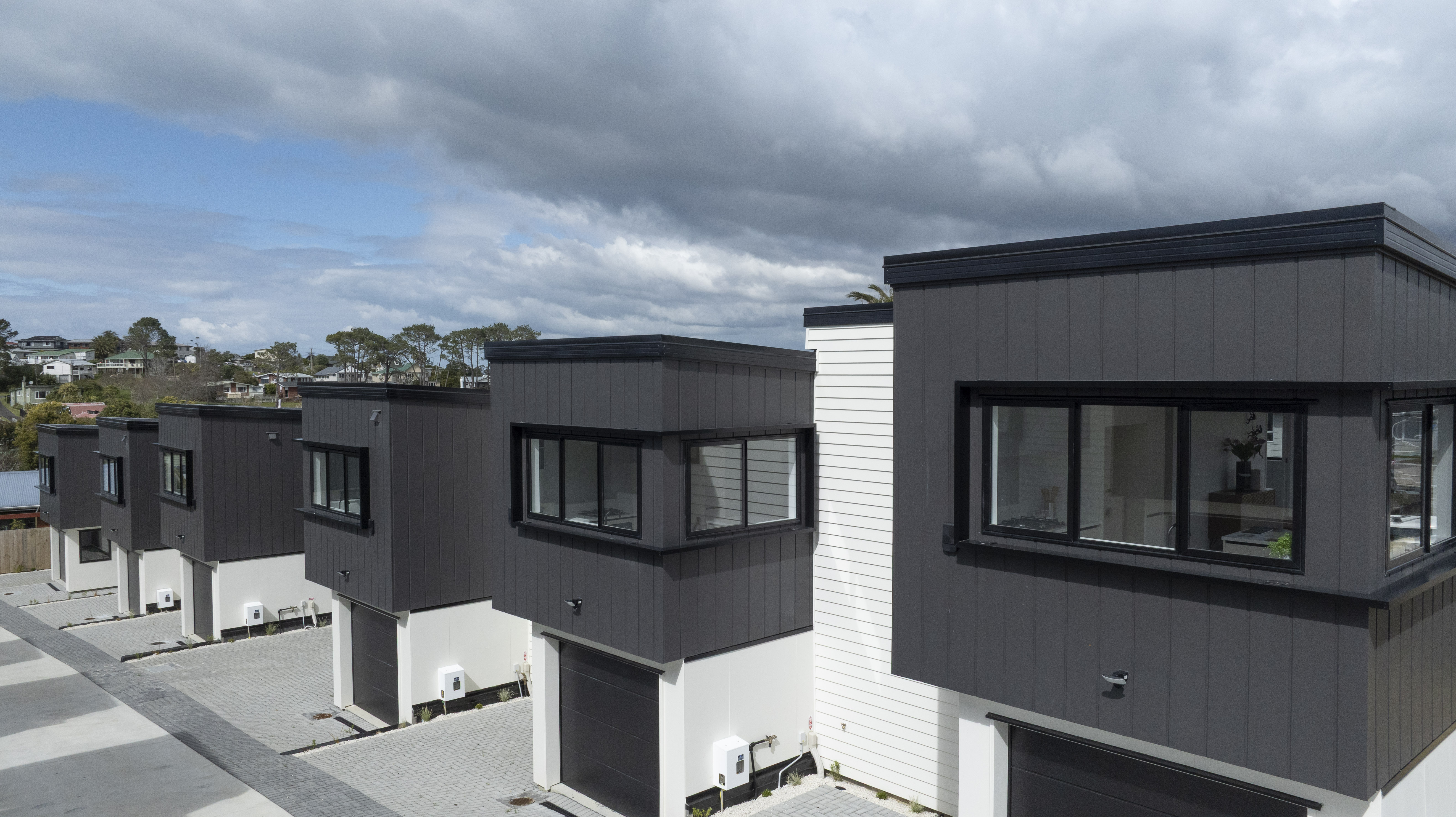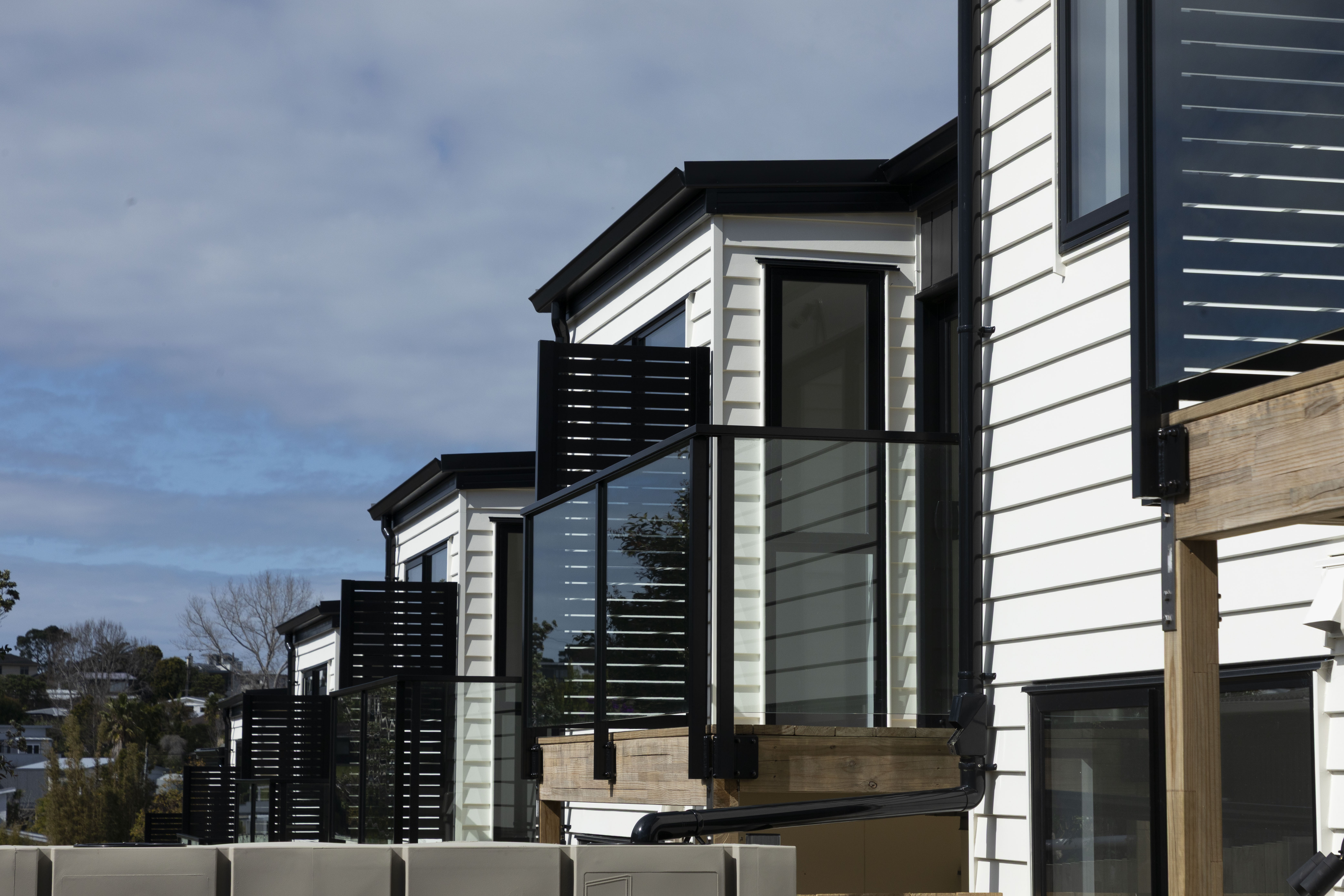 The Coastal Rise development in Whangaparaoa presented an intriguing design challenge: how to apply a contemporary bach feeling to terrace housing while creating a cohesive development that didn’t feel repetitive or constrained by typical terrace housing limitations.